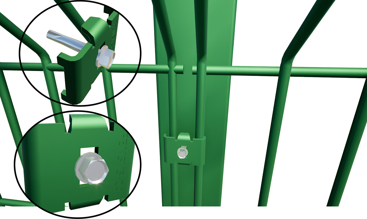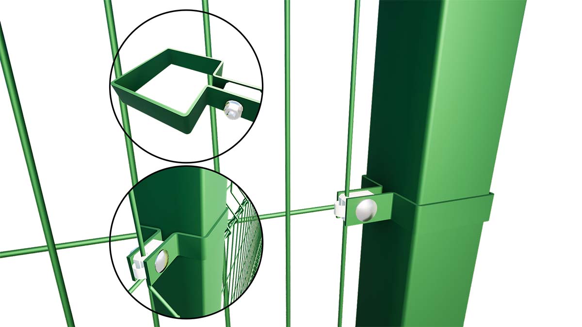 Крепежные хомуты для сетчатых ограждений. Предназначены для крепления сетчатой панели к профильным столбам сечением 40, 60 или 80 мм с учетом их монтажной глубины.