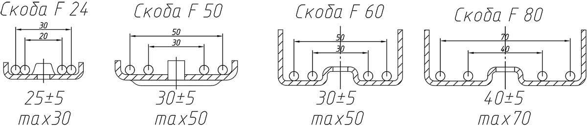 Усиленная скоба F50 изготавливается из 3 мм металла. Сформированные при штамповке рёбра жёсткости и дополнительные центральные упоры значительно повышают прочность скобы F50.