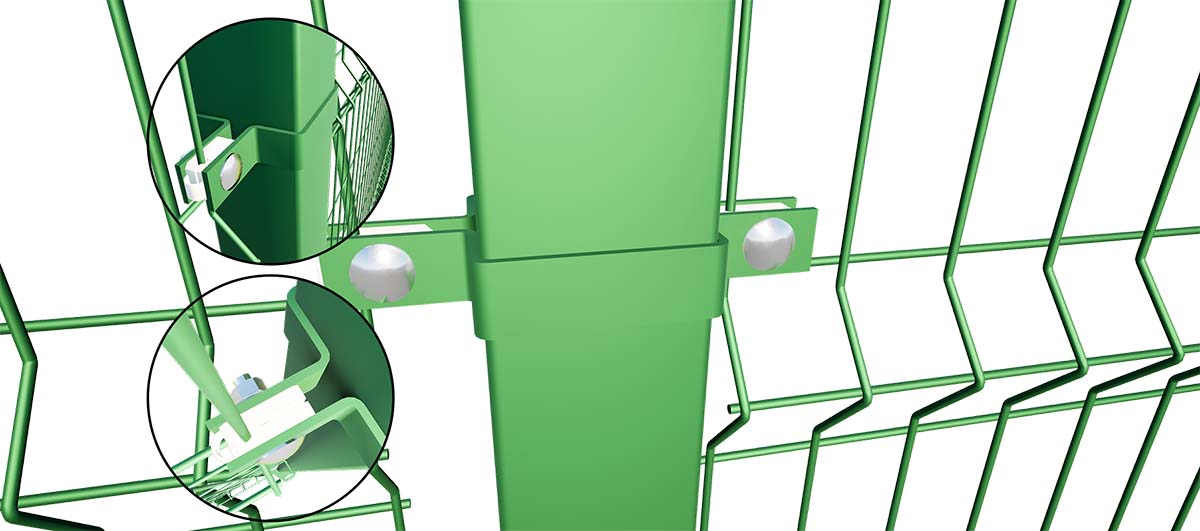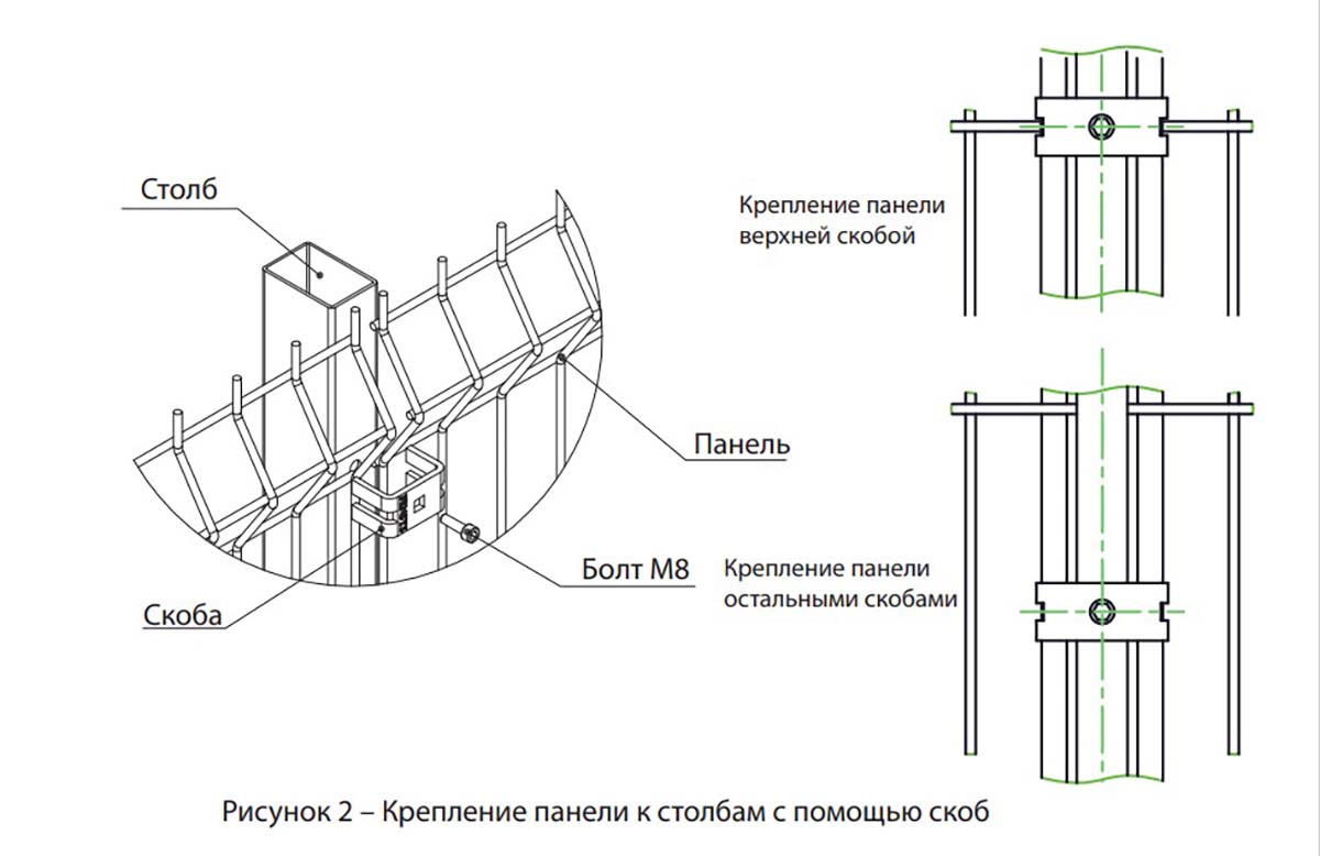 Выбор способа крепления сетчатых панелей к опорным столбам определяется проектной документацией. Инженер-конструктор на этапе проектирования рассчитывает тип и количество крепежных элементов, исходя из параметров ограждения: высоты конструкции, ветровых и эксплуатационных нагрузок. На основе этих расчетов в проекте указываются конкретные технические решения и требования к монтажу.