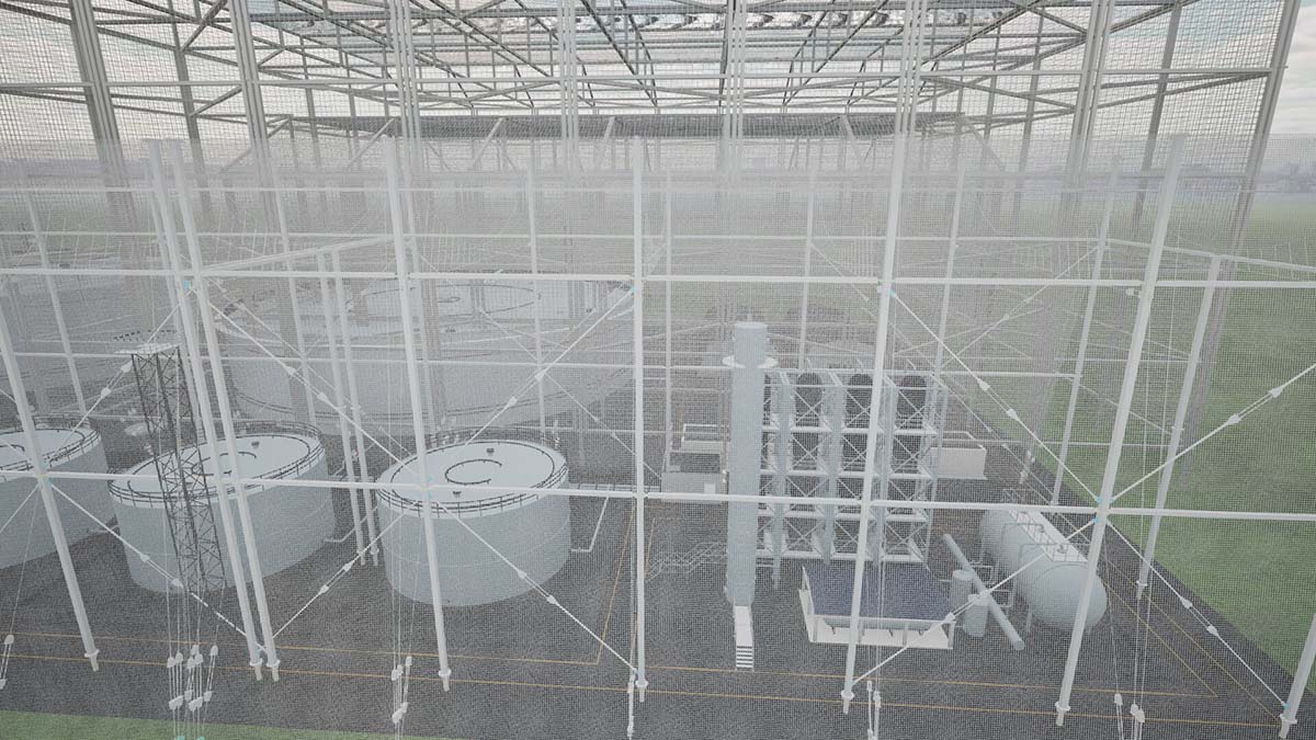Основу физической защиты составляют стационарные защитные укрытия. Эти системы представляют собой каркасные конструкции, которые монтируются непосредственно над охраняемыми зонами — резервуарами, технологическими модулями или зонами погрузки. Каркас выполняется из высокопрочных материалов, устойчивых к механическим воздействиям и коррозии. На него в зависимости от задачи закрепляется специализированная металлическая сетка или СВМПЭ, предназначенная для перехвата БПЛА. Конструкция может быть усилена противоосколочными матами.