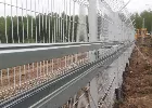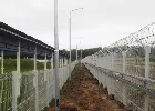 Учитывая особенности грунта данного конкретного объекта, установка сетчатого 3D ограждения была выполнена на сваи. Монтаж конструкции был выполнен с учетом всех нюансов объекта, таких как обход перепада высот и возможность прокладки кабеля.