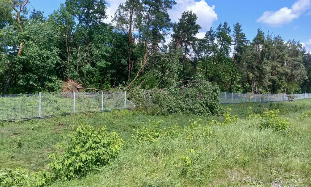 Подобные случаи повреждения панелей часто происходят на практике. Например, на ограждение одного из объектов РЖД в нескольких местах упали крупные деревья, повредив часть защитного периметра. Мы оперативно поставим комплект для ремонта металлического периметра