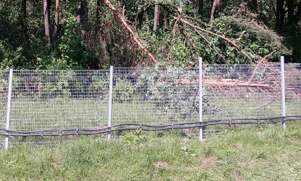 - Прямое падение:Сильный ветер, ураган, обледенение или гниение могут привести к падению целого дерева или крупной ветки на секцию забора. Масса и скорость падения могут вызвать серьезные деформации столбов, разрыв или сильное провисание сетки, вплоть до полного разрушения секции.