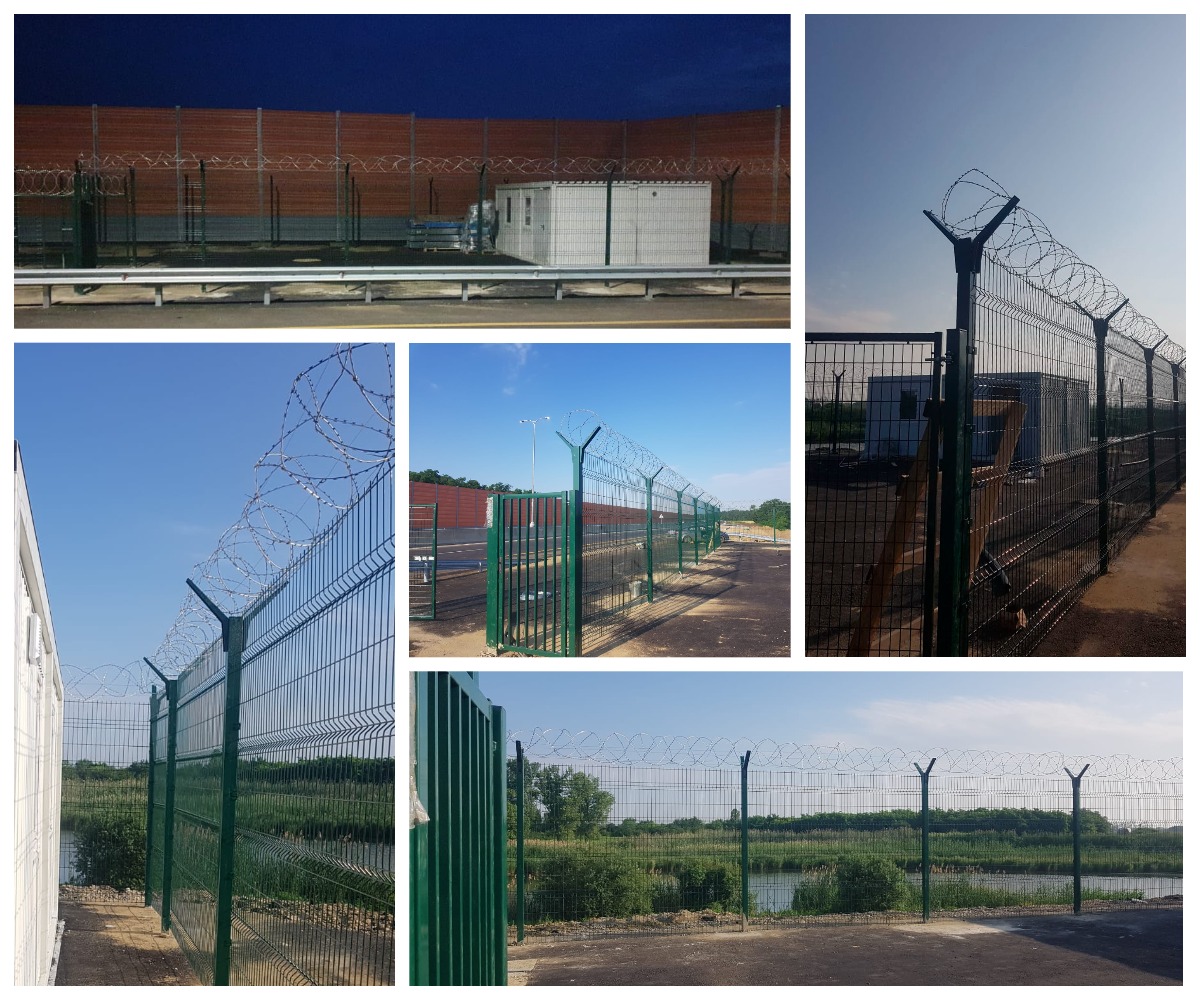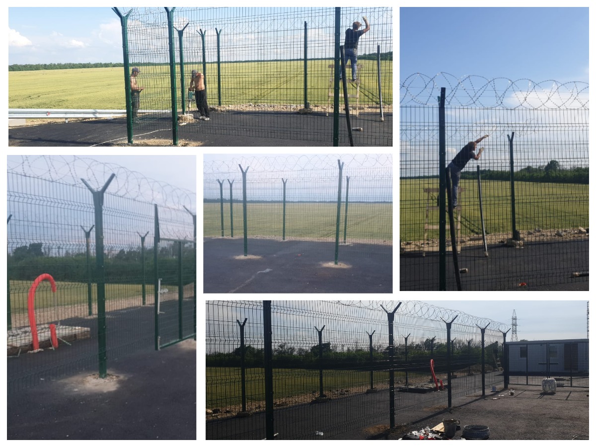 Для обеспечения максимальной охраны периметра объектов, находящихся вдоль М4, смонтированы дополнительные элементы безопасности- металлические насадки на столбы и СББ из армированной колючей ленты.