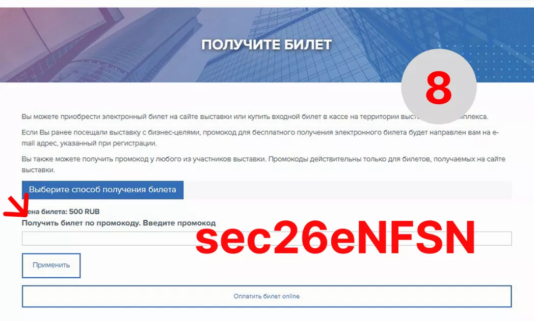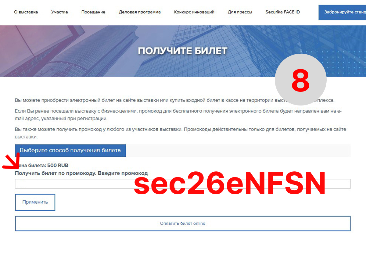 Получить билет бесплатно можно на сайте выставки, для этого, пройдите регистрацию, и введите персональный промокод от FENSYS: sec26eNFSN