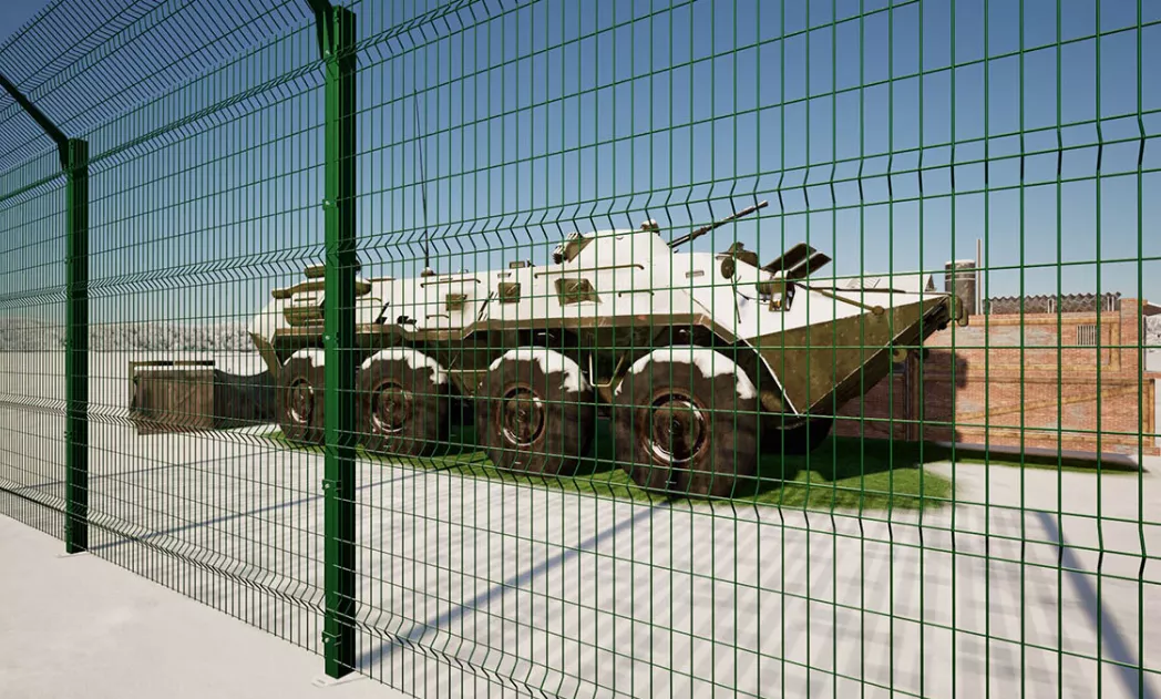 Система ограждений серии «ПИРОС» производственной компании FENSYS спроектирована специально для возведения на территории охраняемых объектов Вооруженных Сил РФ, используется для защиты периметра военных объектов высшей, I и II категорий.