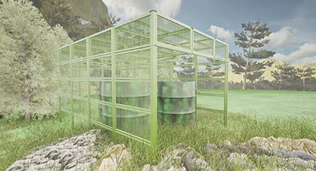 Пример использования мобильных укрытий для защиты топливных бочек, цистерн и других ёмкостей. Дополнительно могут быть установлены запираемые ворота или калитки.