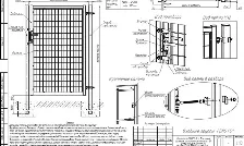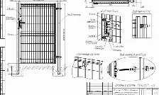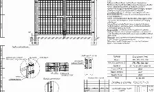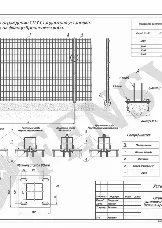 Заполнение плоской панелью или профильной трубой. Ширина от 3000, 3500, 4000, 4500 мм, высота от 1500 до 2500 с шагом 100 мм. Профиль створки 60х60. Профиль столба 100х100 мм. Установка опоры на фланце.