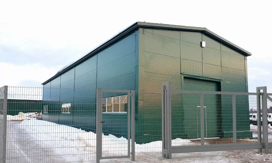 Сетчатые 2D заборы для охраны периметра промышленного ангара отличаются высокой прочностью панелей, устойчивостью и долговечностью.